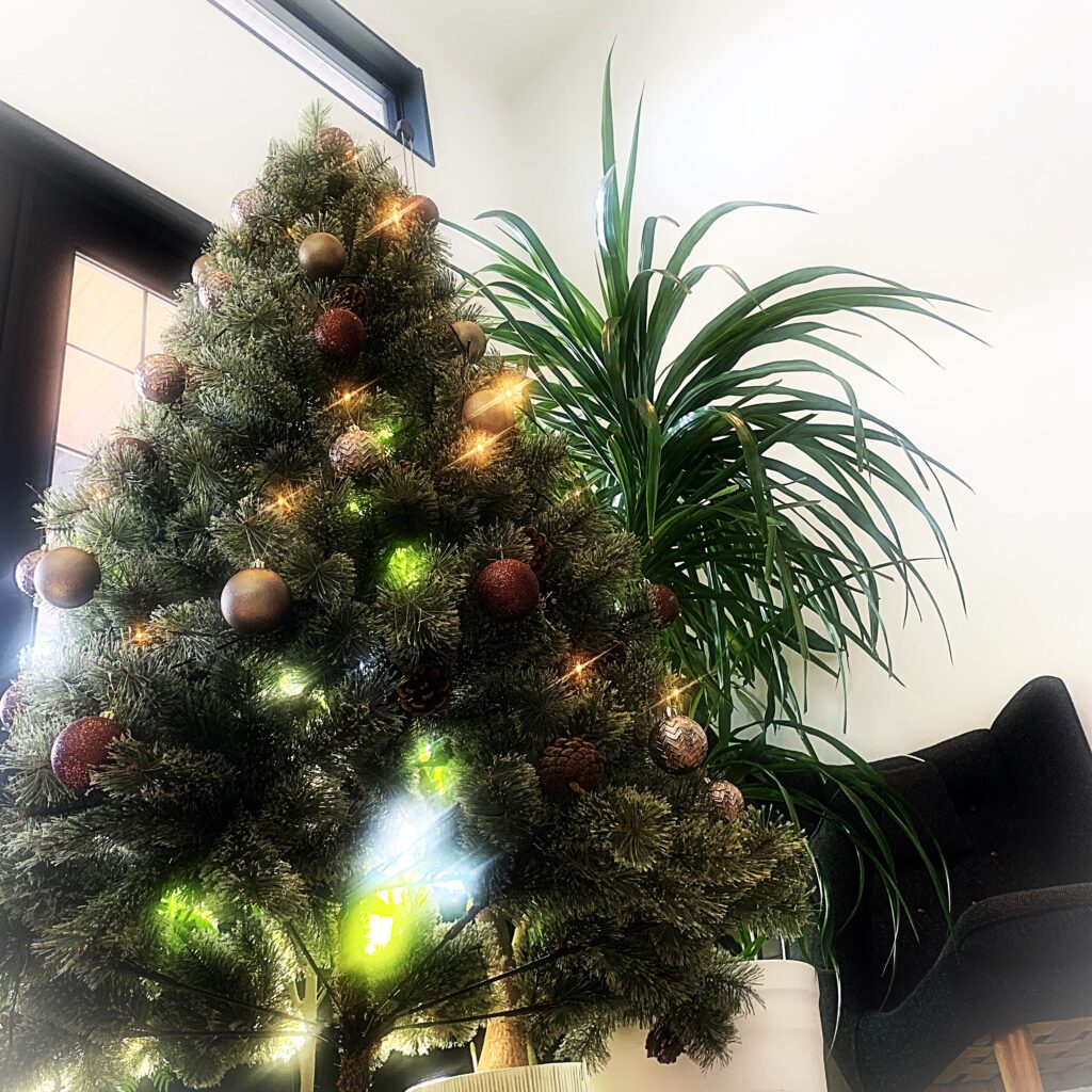 クリスマスツリーの飾り付けをしながら